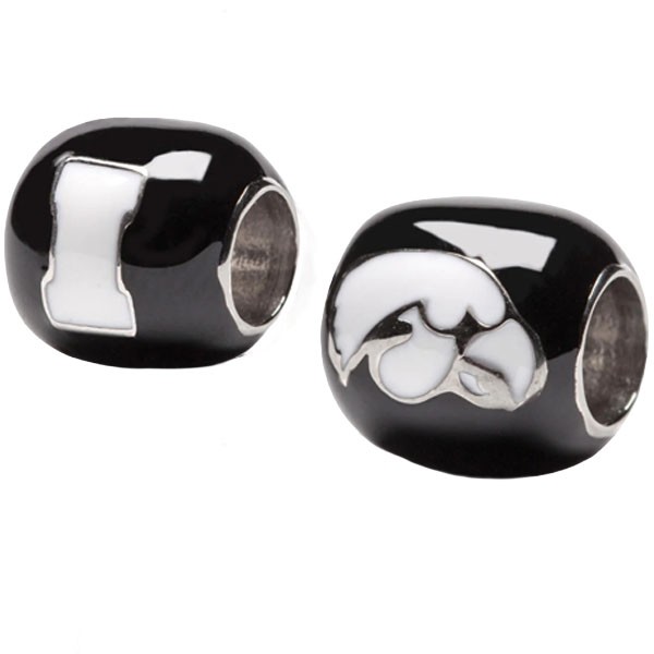 Weather starting your own charm bracelet or adding to show off your team spirit with Iowa Hawkeyes 2-Sided Logo Black/White Charm. This black charm has the classic block I in white one side and everyone's favorite Tigerhawk logo in white on the other side. Fits the Pandora bracelets. Made by Stone Armory.