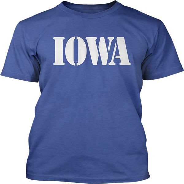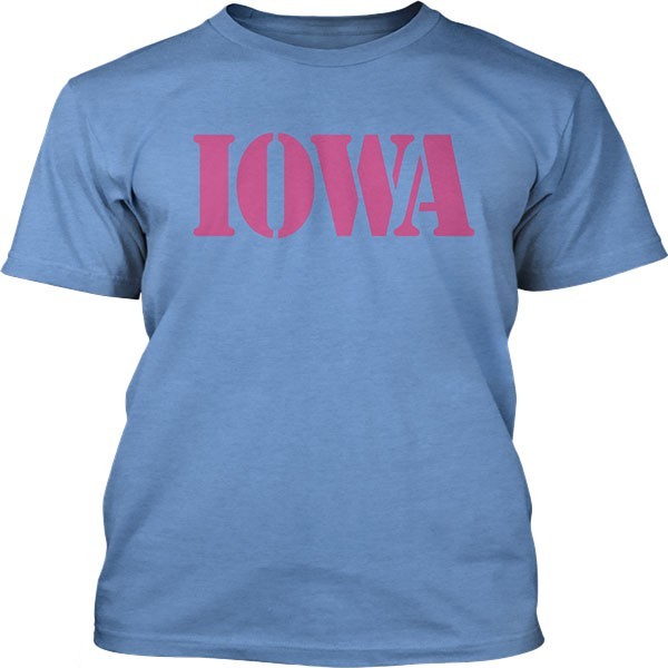 The Iowa Hawkeyes Fashion Short Sleeve Tee has everyone's favorite color. The dark blue and turquoise have IOWA in hot pink. The blue, green, and navy have IOWA in white. Made of 100% cotton. Made by Top Promotion.Â