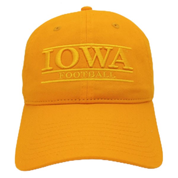 The Iowa Hawkeyes Twill Tonal Football Hat is perfect for you to show pride in your favorite Iowa Hawkeye sport. The hat features IOWA with FOOTBALL below. Comes in your choice of black or gold.