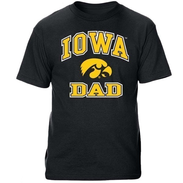 The Iowa Hawkeyes Vertical Arch Dad Tee is the perfect tee for Dad. This tee features IOWA arched over the Tigerhawk with DAD below. Comes in your choice of black or gold. 100% cotton. Made by CI Sport.