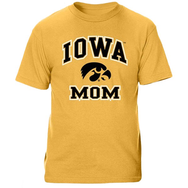 The Iowa Hawkeyes Vertical Arch Mom Tee is the perfect tee for Mom. This tee features IOWA arched over the Tigerhawk with MOM below. Comes in your choice of black or gold. 100% cotton. Made by CI Sport.