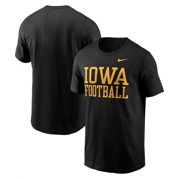 Be Gameday ready with the Iowa Hawkeyes Iowa Football Tee. This black tee features IOWA FOOTBALL in gold. Made of 100% Cotton. Made by Nike.
